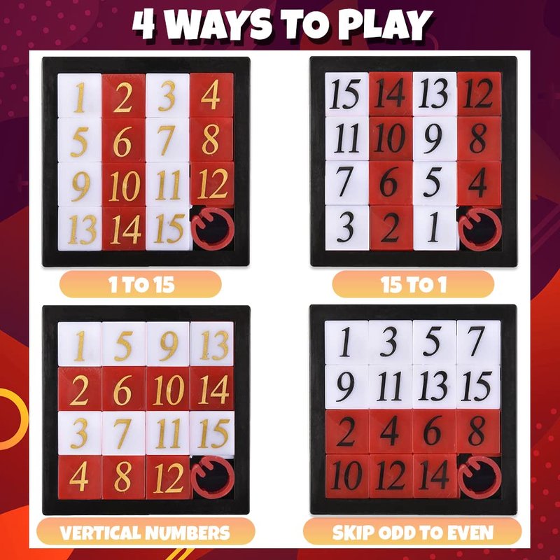 - SLIDE PUZZLE GAME THAT TESTS NUMERICAL SKILLS: Master the art of organization with this fun and educational slide puzzle game! The goal is simple but stimulating: slide the pieces to arrange numbers in order. These number slide puzzles are perfect for developing deductive thinking and numerical mastery while keeping kids engaged for hours of interactive play.