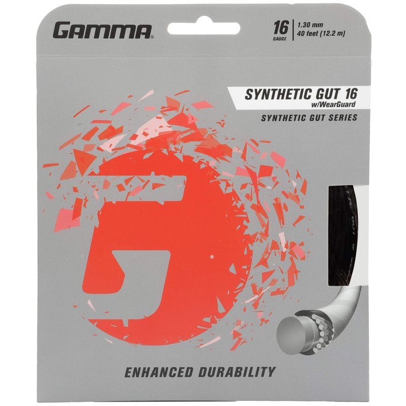 Gamma Sports 16g Synthetic Gut with Wearguard Tennis String Set, 40', Black