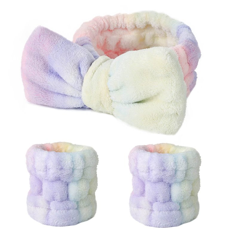 - Unlike other Spa headband styles, the face wash headband includes two matching wristbands to prevent water from running down your arms