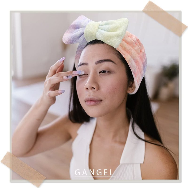 Gangel Bow headbands and Wrist Bands Set Washing Face Headband Bowknot Spa Hairband Tie Dye Makeup Headband Microfiber Fuzzy Hairbands Coral Fleece Skin Care Head Scarf for Women and Girls