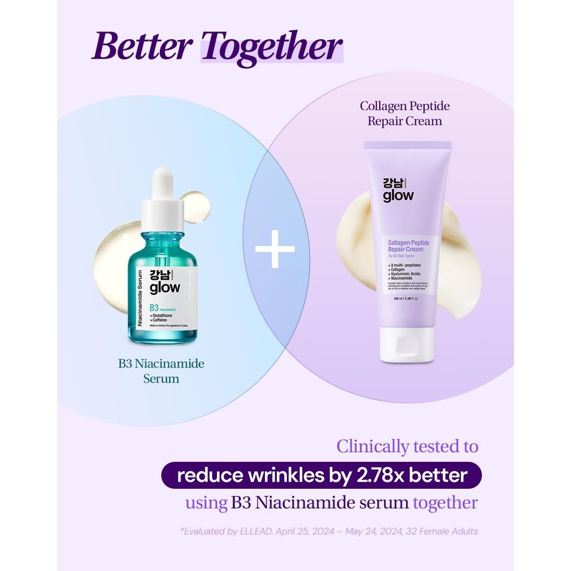 - [DOUBLE-UP DUO] Pair with our niacinamide serum to boost the result! Using both niacinamide serum and collagen peptide repair cream together, clinically tested to fade the look of deep wrinkles 2.78x better in only 2 weeks.