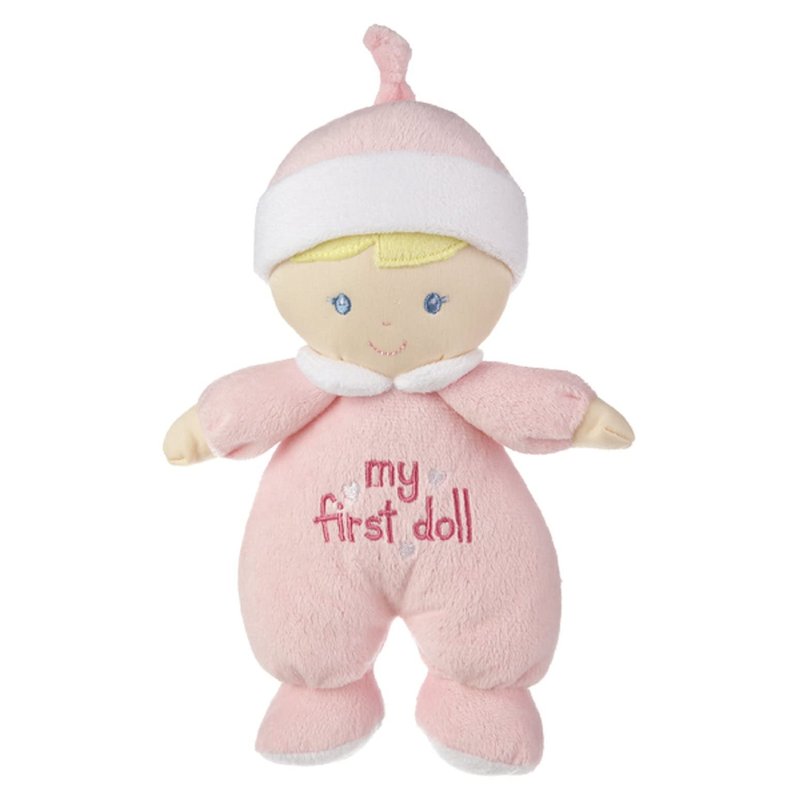 My First Doll Soft Plush Doll with Blonde Hair and Pink Outfit - "I rattle!"