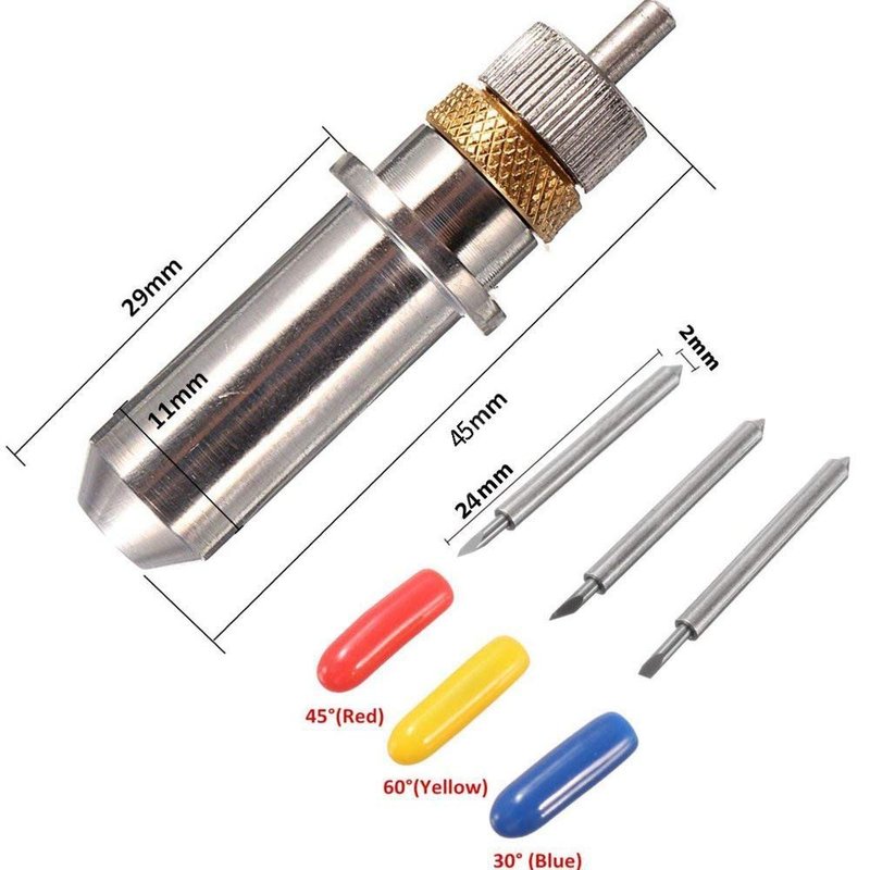- Blade size:24mmX2mm(LXDia),Holder Size:45mmX11mm(LXDia),Carbide tip with higher hardness (HRA93),higher hardness,greater strength, tip more sharper,cutting plotter lettering faster
