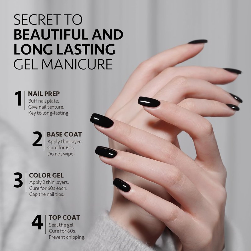 - 4 weeks long-lasting: Buff your nail bed before base coat to give your nail texture. Apply top coat after color gel for shiny finish.
