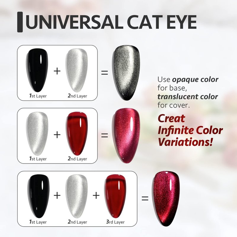 - UNIVERSAL COLOR: Apply other base colors and cover with color #1138 cat eye glitter gel to create infinite color variations.