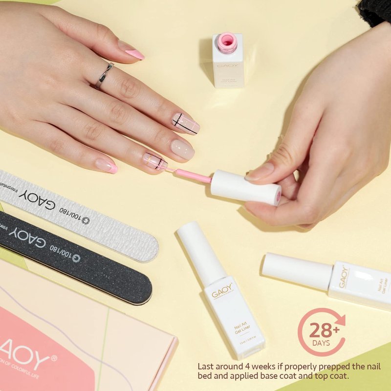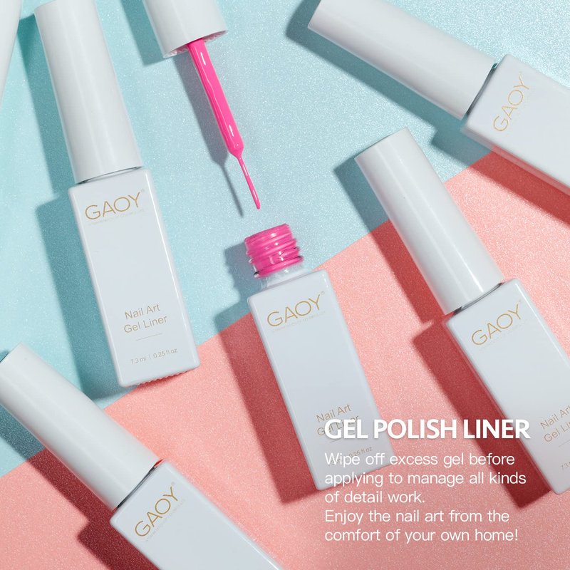 - Package Includes: 6 gel polish colors of 0.25 fl.oz (7.3ml) each. Your all-in-one nail polish gel liner set for all kinds of nail art designs.