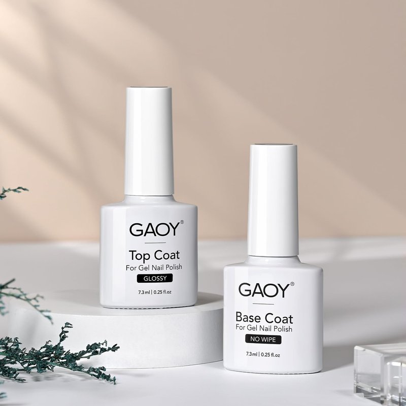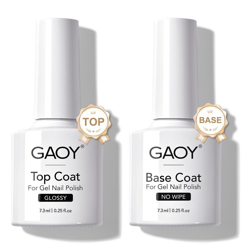 GAOY Gel Top Coat and Base Coat Set, 2 Pcs 7.3ml Glassy Top Coat and No Wipe Foundation Combination for UV Light Cure Gel Nail Polish