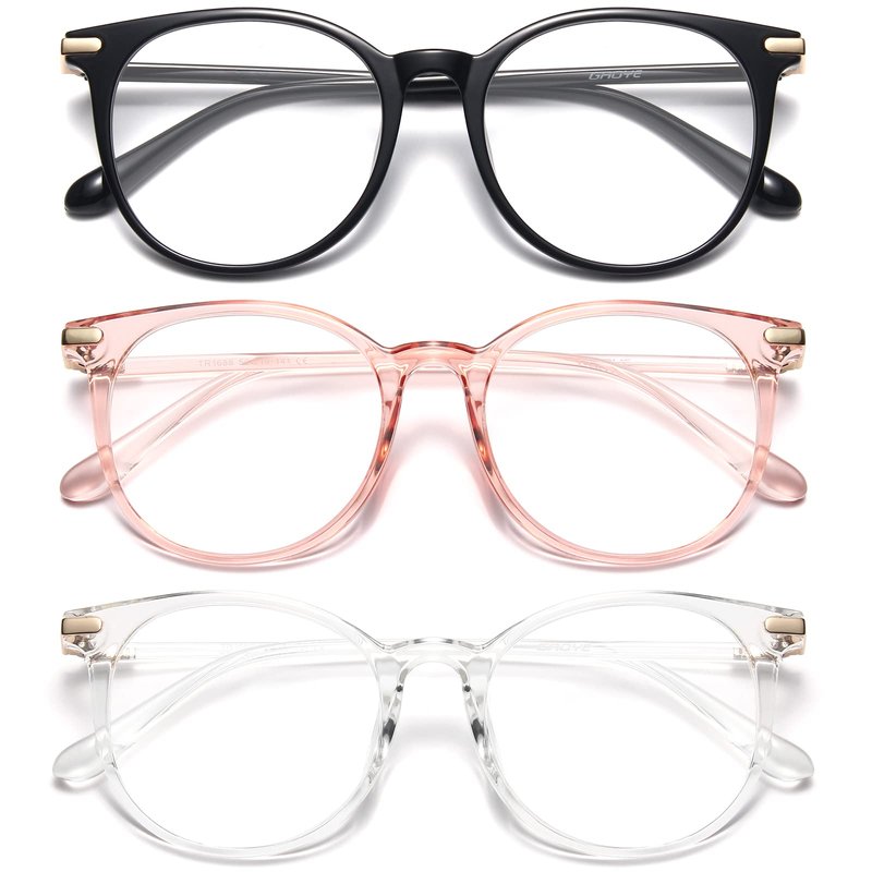 Gaoye 3 Pack Blue Light Blocking Glasses, Retro Round Eyewear Frame Anti Eyestrain Computer Glasses for Women Men - GY1688 (Black+Pink+Transparent)