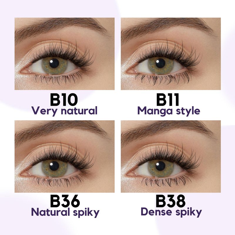 - SPARKLE YOUR EYES:There are 3 options of bottom lash clusters in GAQQI. B10:natural and everyday look; B11:spiky and manga style;B36+B38: natural and thick 2 styles mixed.