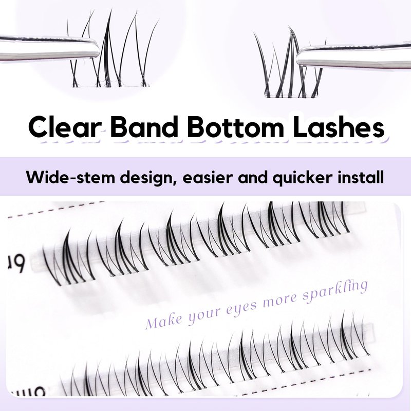 - WIDE CLEAR BAND: Our bottom lashes features clear and thin lash band, which look natural and like your real lashes. The wide stem design combines two lower clusters into one, making them easier to apply and more convenient to wear.