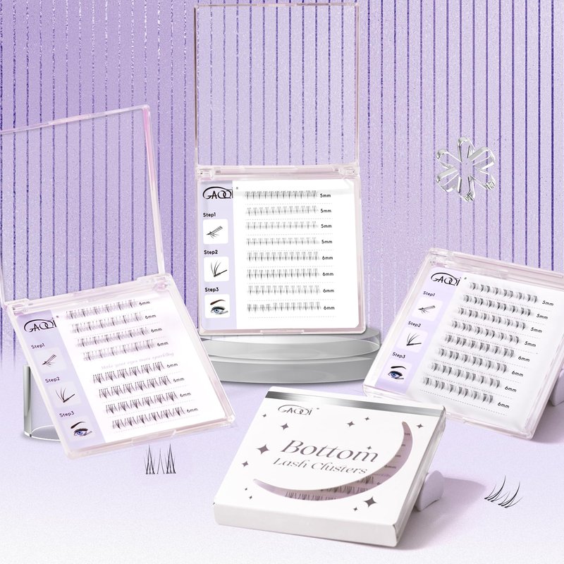 GAQQI bottom lash clusters will match with all your false lashes well. There are 3 different styels of lower lash extensions in gaqqi, and suitable for achieve all lash look. Our bottom cluster lashes are made by premium materials that are comfortable to wear, natural J curl, looks real and natural. The wide band under lashes design, makes it is easy to wear and suitable for beginner.