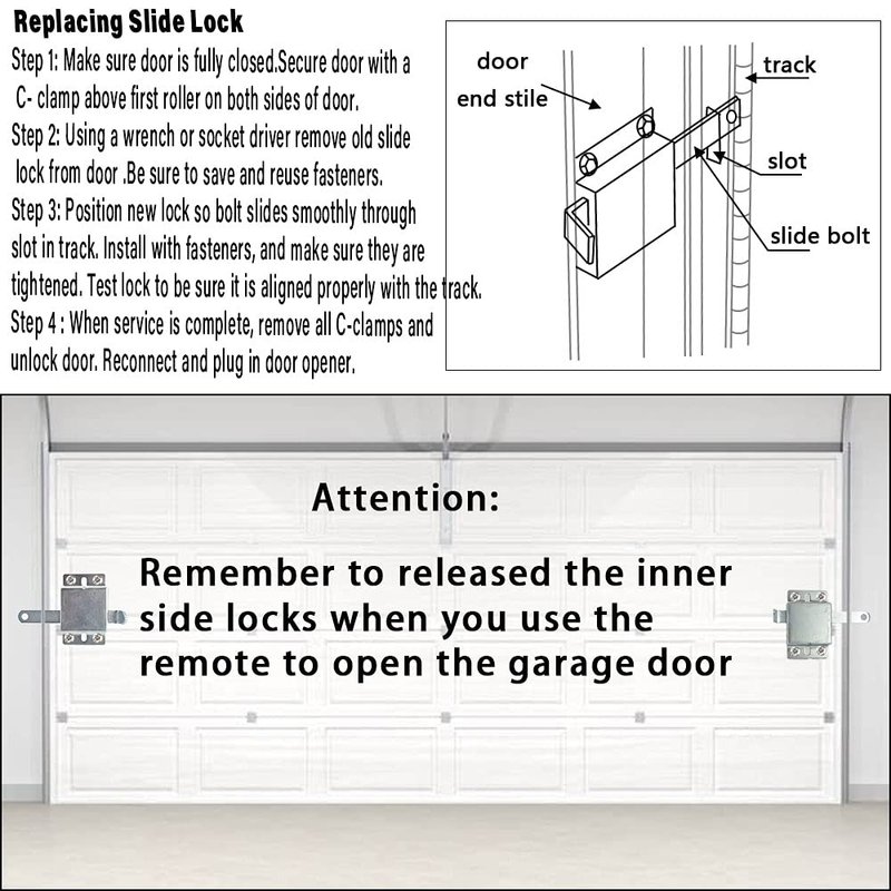 - ★【Good Quality】: This inside deadlock is made of high quality galvanized steel, provides you with peace of mind and extra security for your garage door, very durable even in a long term-usage