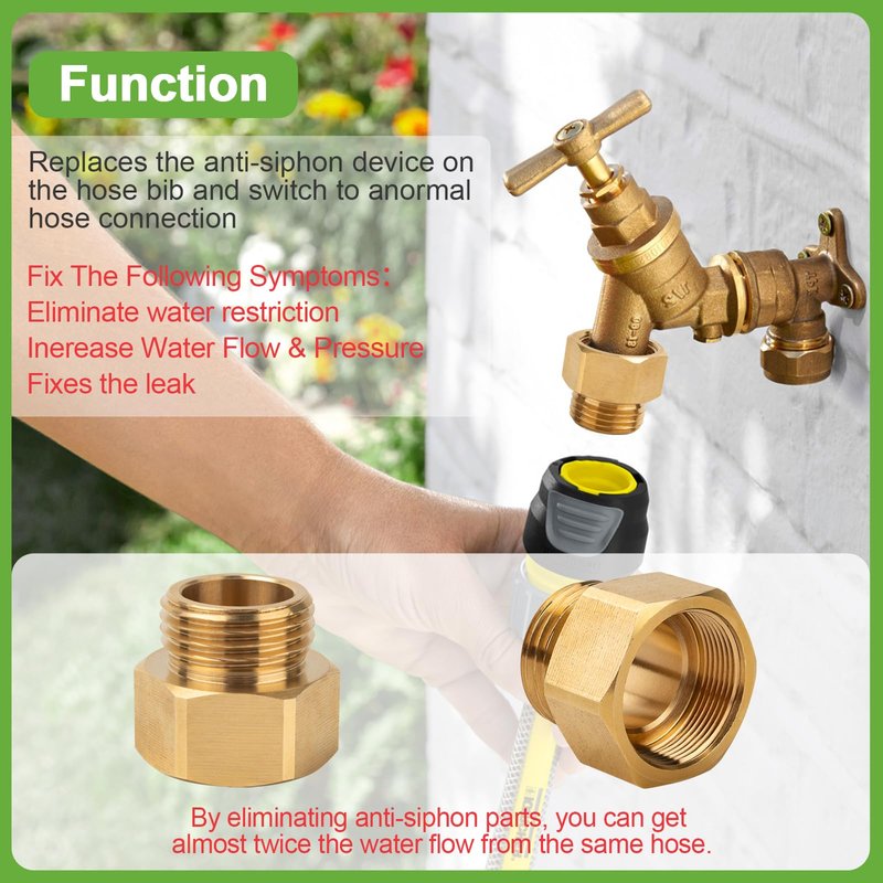 - Fix The Following Symptoms:These hose bib adapters replace garden hose connections.,Repairs low flow due to the limitation of the Arrow brand anti-siphon device, in which case, no anti-siphon part is required, just replace this adapter to get almost twice the water flow (gpm) from the same hose. 1.Eliminate water restriction,2.Increase Pressure & Flow,3.Fixes the leak