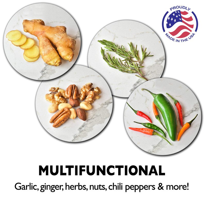 - [ MULTIFUNCTIONAL ] Compared to the garlic press, this tool can do so much more. Mince garlic, ginger, herbs, nuts and more!
