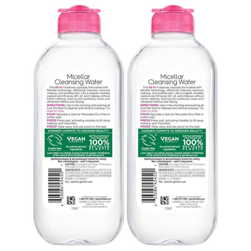 Garnier Micellar Water, Hydrating Facial Cleanser & Makeup Remover, Suitable for Sensitive Skin, Vegan, Cruelty Free, 13.5 Fl Oz (400mL), 2 Count