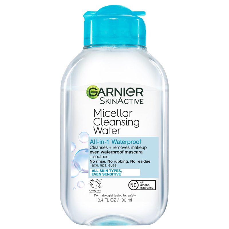 - Micellar Water Travel Size Kit: Garnier Micellar Cleansing Water is a makeup remover & facial cleanser for face, lips & eyes that soothes & refreshes skin in just 1 step. Includes travel size original micellar water & micellar water for waterproof makeup