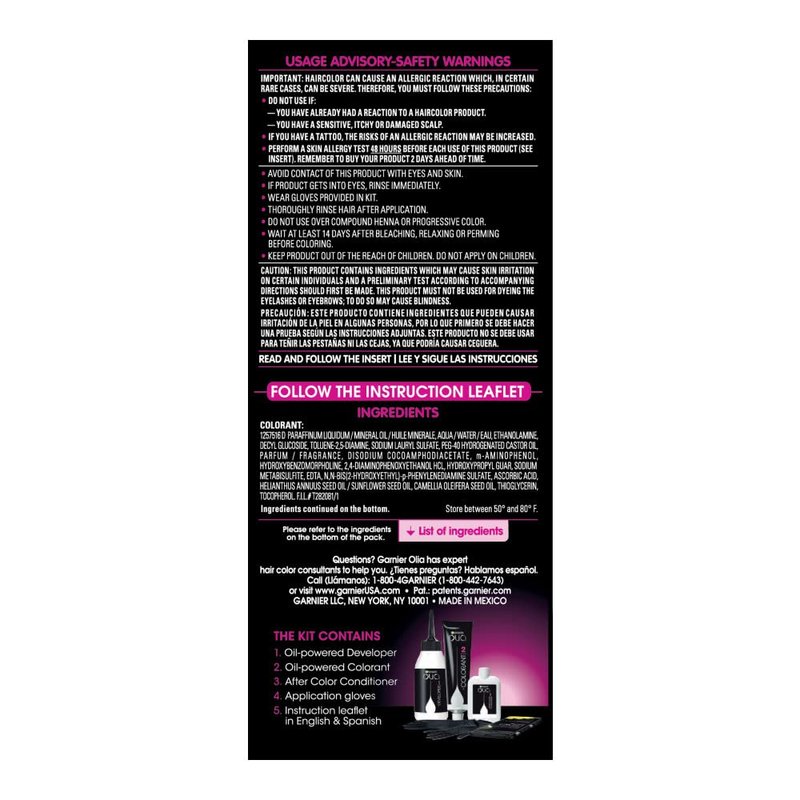 Maximum lightening performance by Olia. Garnier Olia B+++ Bleached Blonde Extreme delivers up to 7 levels of lift for brilliant, long-lasting blonde results. OIia bleach is cruelty free and formulated without ammonia and parabens. The kit includes a velvety anti-brass conditioner infused with sunflower and camellia seed oil to neutralize unwanted warm tones. The non-drip velvety creme bleach formula is easy to apply and has a delicate floral fragrance for optimal comfort.