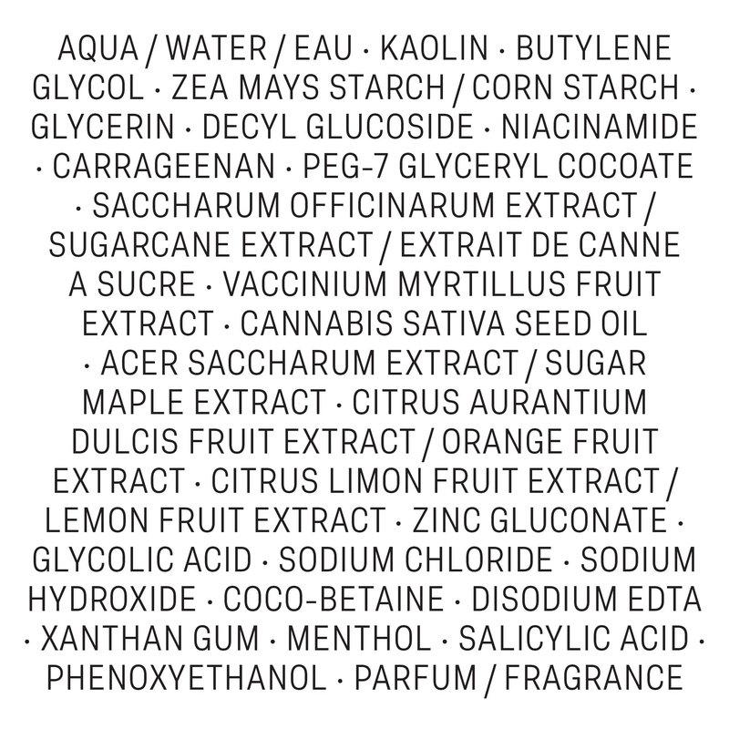 - Niacinamide Vitamin B3 + Cannabis Sativa Seed Oil deeply cleanses, provides shine control, and tightens pores