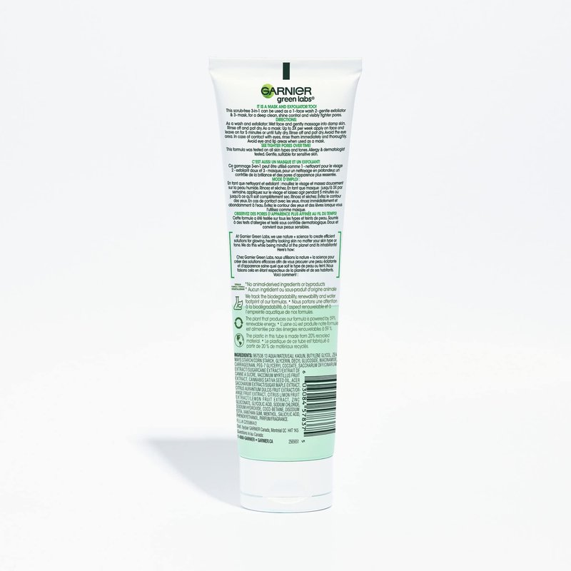 Garnier SkinActive Green Labs Canna-B Pore Perfecting 3-in-1 Face Wash Exfoliator Mask with Niacinamide Vitamin B3 Cannabis Sativa Seed Oil for Combination to Oily Skin 4.4 Fl Oz (Packaging May Vary),