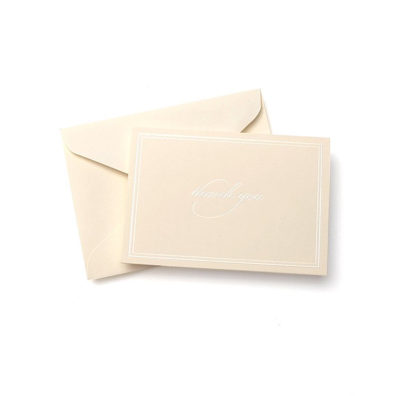 - Featuring a simple “thank you” in pearl foil on the front and a blank interior for you to personalize