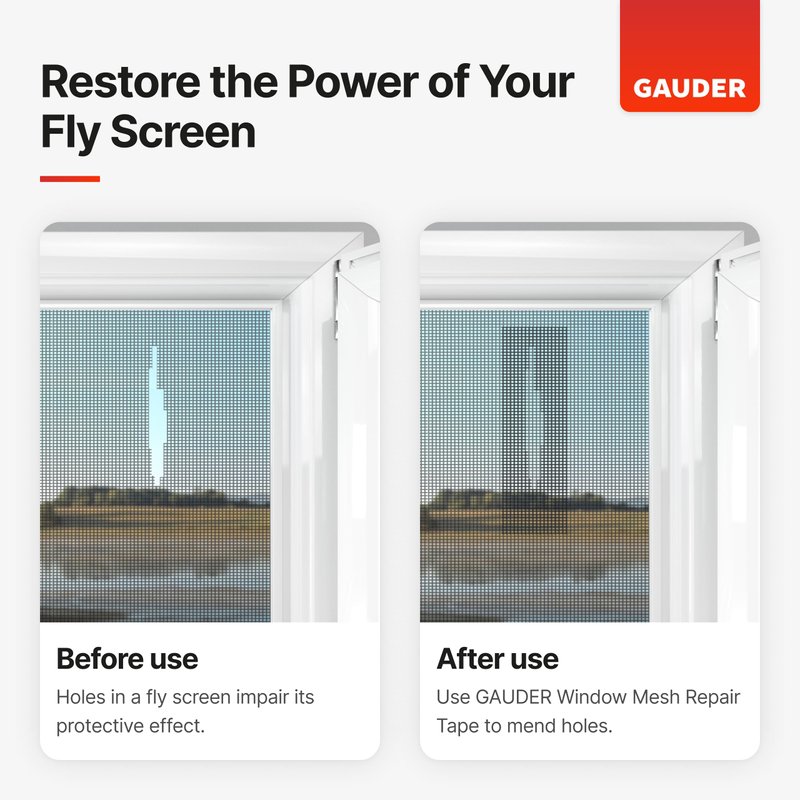 - FAST ASSEMBLY – Our GAUDER Net Mesh Repair Tape is easy to apply - use it to repair your window screen in just a few minutes.
