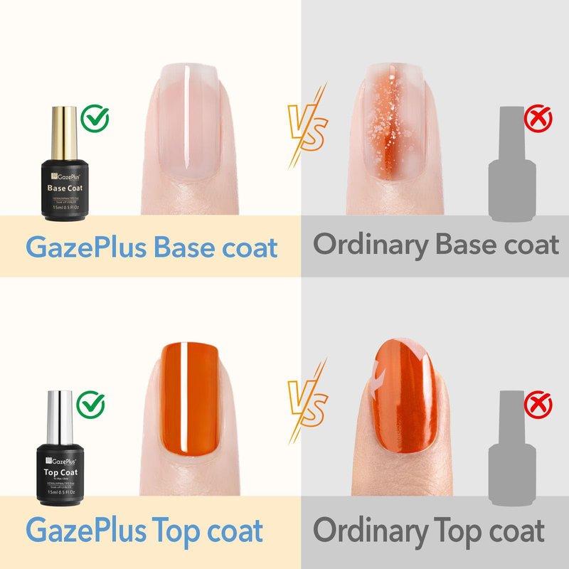 GAZEPLUS 2 Pcs 15ml No Wipe Gel Top & Base Coat Set Hema-free Shiny & Long Lasting,Base Top Coat for Gel Nail Polish Professional Nail Salons