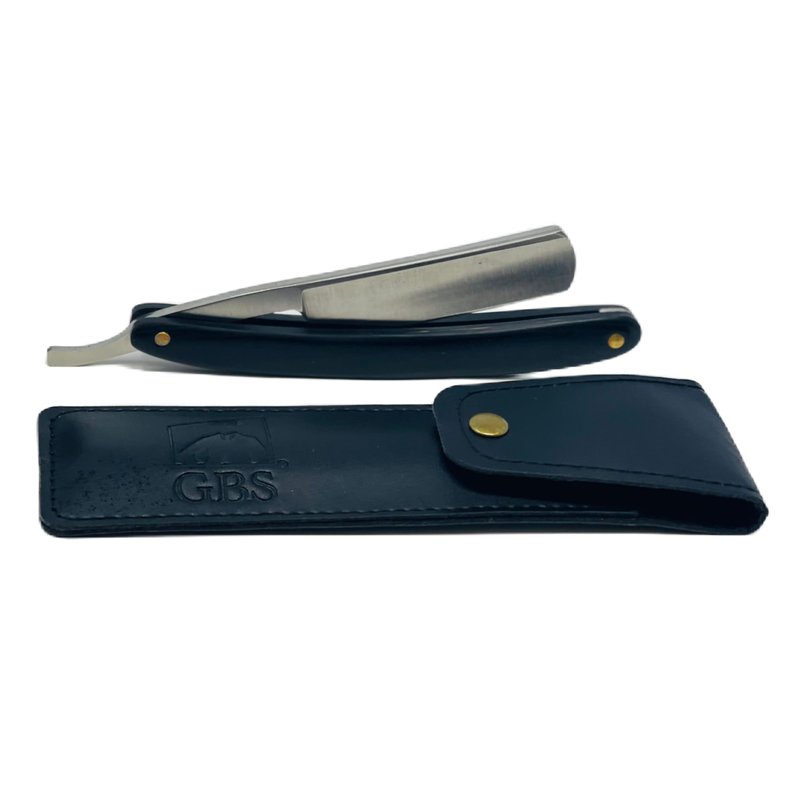 G.B.S Black Luxury Shaving Kit - Wood Straight Razor, Mug, Natural Soap, Brush, Alum block, Strop and Paste Grooming Kit, Black
