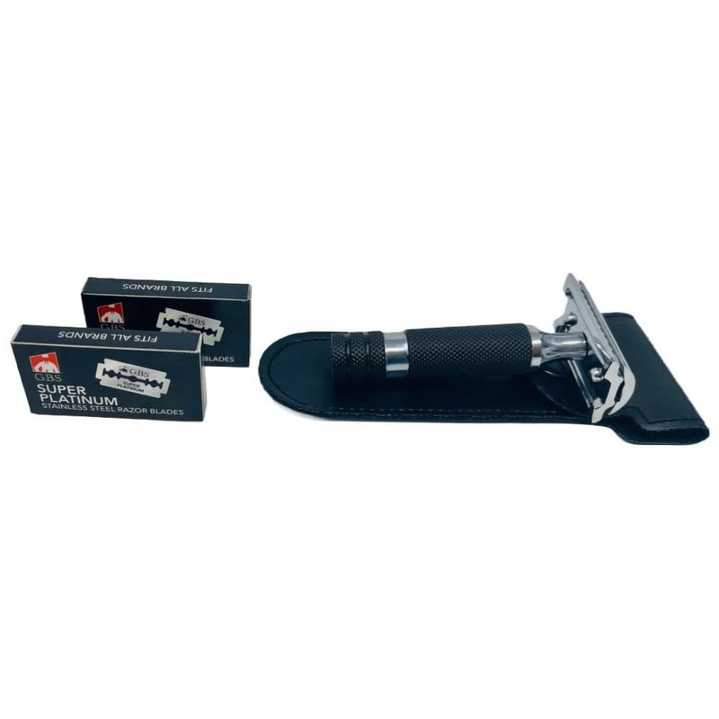 G.B.S Double Edge Shaving Razor Short Rubber Handle Grip With Leather Protective Travel Case 20 blades Double Edge Safety Razor Perfect Gift Long Lasting Skin Friendly Satisfaction. Leather protective travel case is made of finest quality leather and will guaranteed last with you for a very long period of time. Leather protective case come with snap lock system that ensures you that razor will be safe and secure in case wherever it is kept. 20 Pack replacement double edge razor blades are best to use and they are enough sharp to have smooth and razor bump free shave.