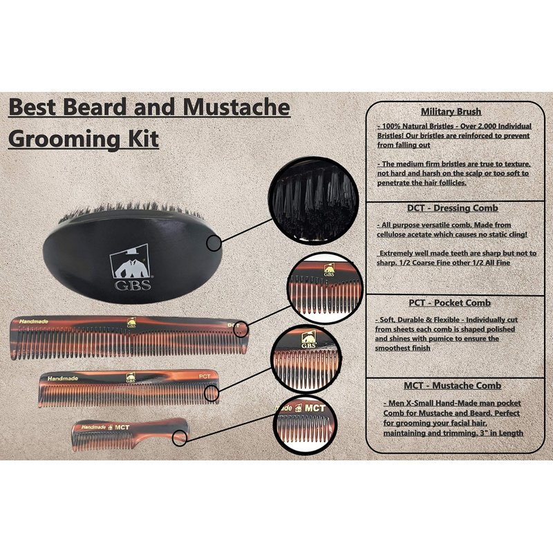 G.B.S Men’s Handmade Comb Set, Pure Synthetic Hair Brush, Dressing Comb, Pocket Comb, Mustache Comb and Military Style Hair Brush
