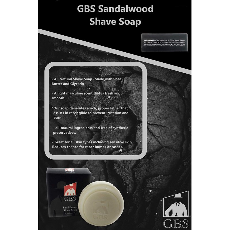 G.B.S Men's Sandalwood Shaving Soap with Shea Butter and Glycerin, 3oz