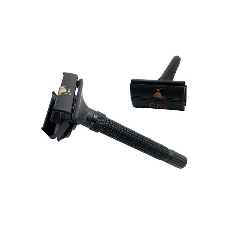 G.B.S Men's Shaving Razor with Adjustable Butterfly Open Mechanism Double Edge Safety Razor, Black Matte