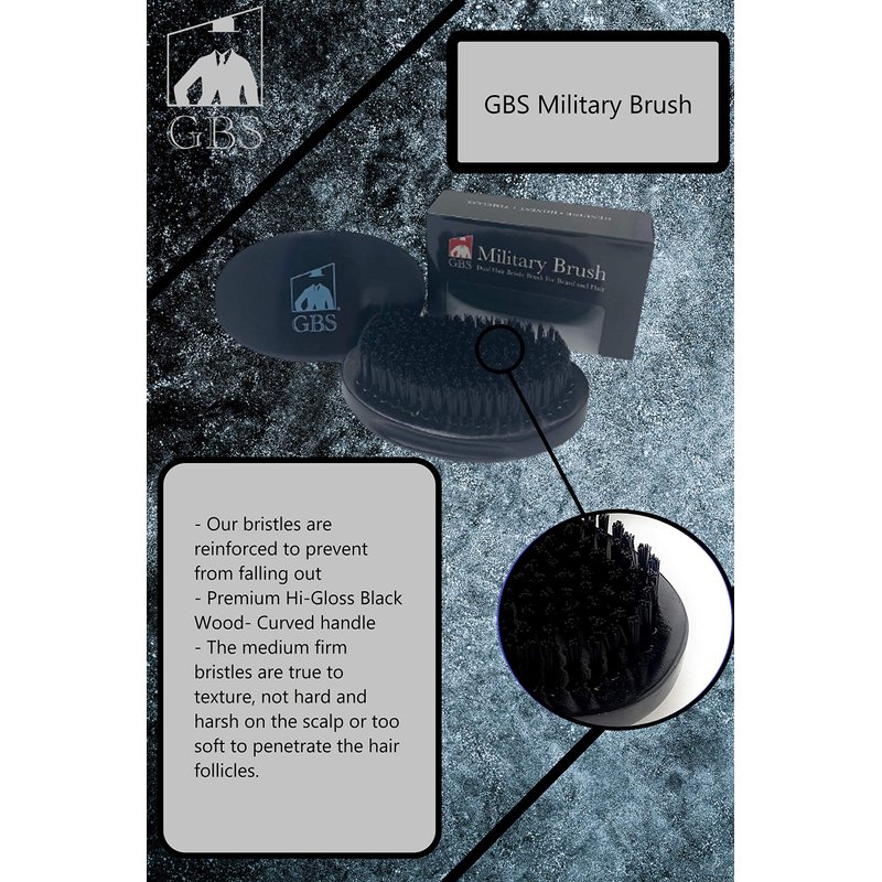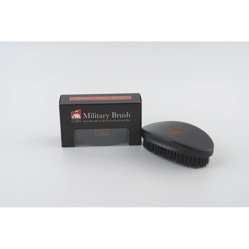 G.B.S Military Style Dual Bristle Beard and Hair Brush - Hi-Gloss Wood, Animal-free Vegan Bristles, Over 2,000 Firm Bristles for Daily Grooming (BLACK)