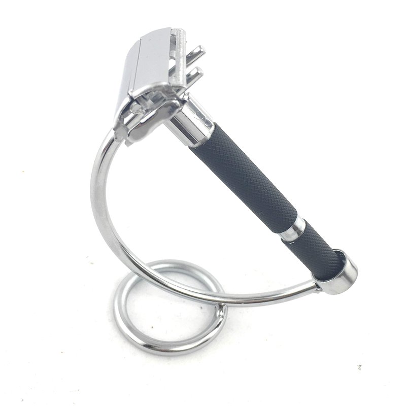 G.B.S Razor's stand is Curved Steel Stand and stainless polished for storing all types of regular razors. This stand is higher than just a display Item. The most essential thing you can do to secure your razor long life is to dry the Shaving razor by holding face in slant direction & hold the bottom of the razor's handle direct in the cup-like base This stand holds your razor at 45 degrees and will make assure a proper room to store a razor. This stand will adjust to easily to your razors (Length 3.15”) and saves your area at washing sink