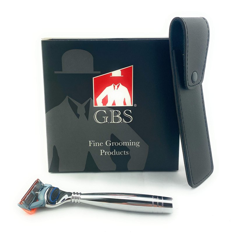 G.B.S Stylish Shaving Razor with Protective Leather Case, Chrome