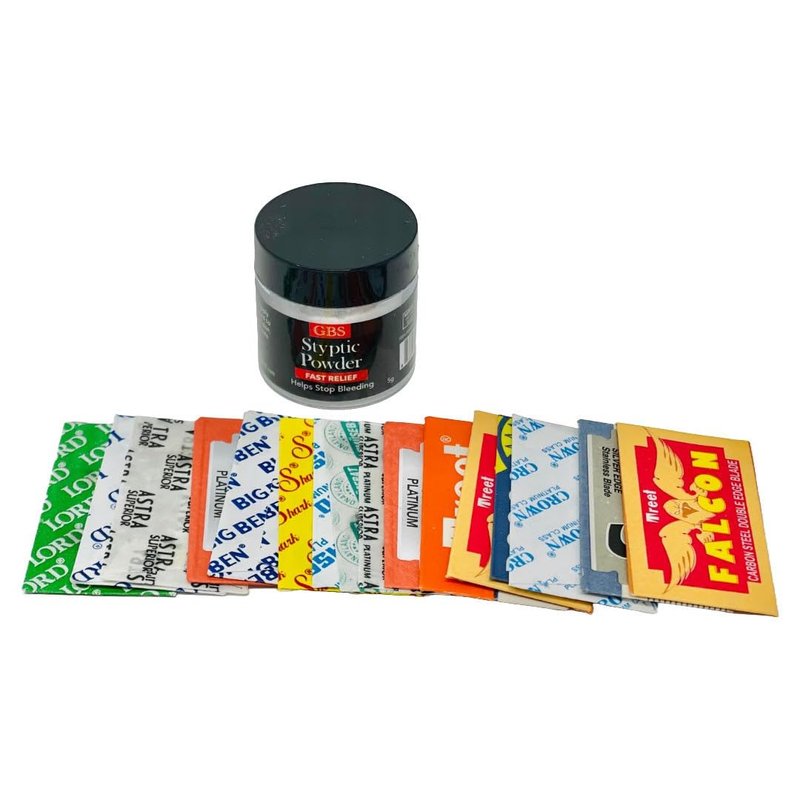 G.B.S Styptic Powder Jar for Nicks and Cuts Stops Bleeding Instantly Relief Face Neck Soothes Skin and Pore After Shave, Pack of 18 Double Edge Safety Razor Blades DE Blade Refills