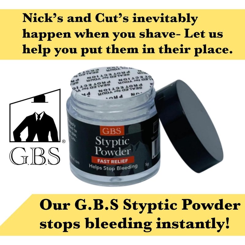 - Treats shaving nicks like a styptic pencil, fight razor burn upgrade your shave with G.B.S Styptic Powder, apply it to the cut or knick to stop instantly, after 2-3 minutes’ rinse and dry