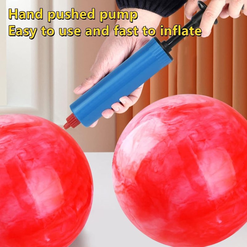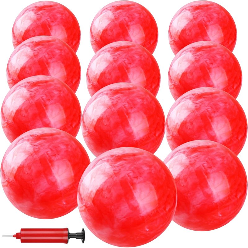 - Package includes: You can get 12 red exquisite marble-patterned inflatable balls in 1 toy set transaction. Not only that, you also get 2 pumps for inflating the balls, so you don't have to worry about inflating.