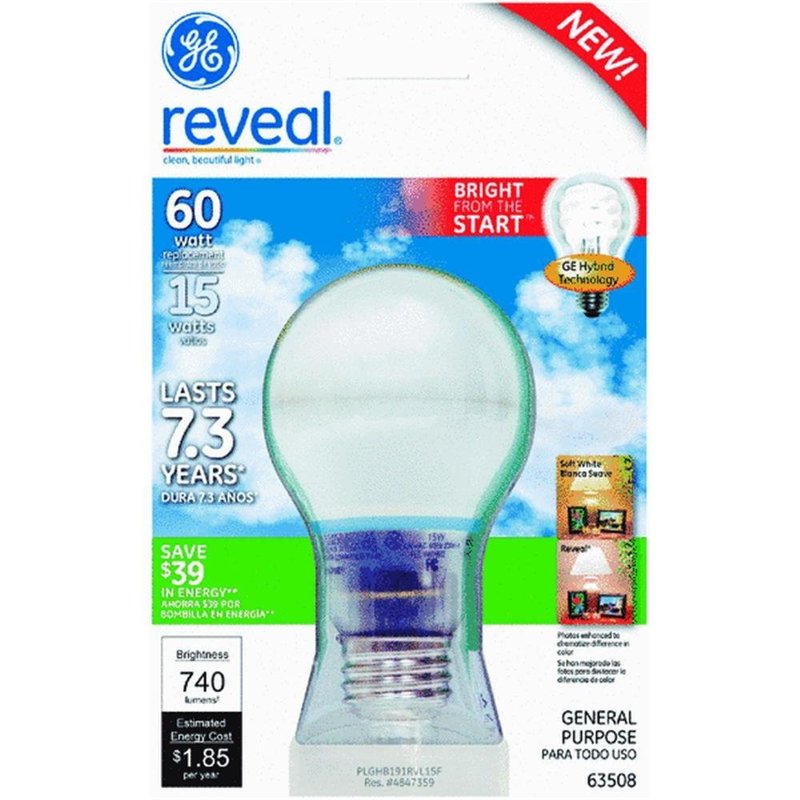 GE 63508 15-Watt 740-Lumen Bright from the Start CFL Light Bulb, Reveal, 1-Pack