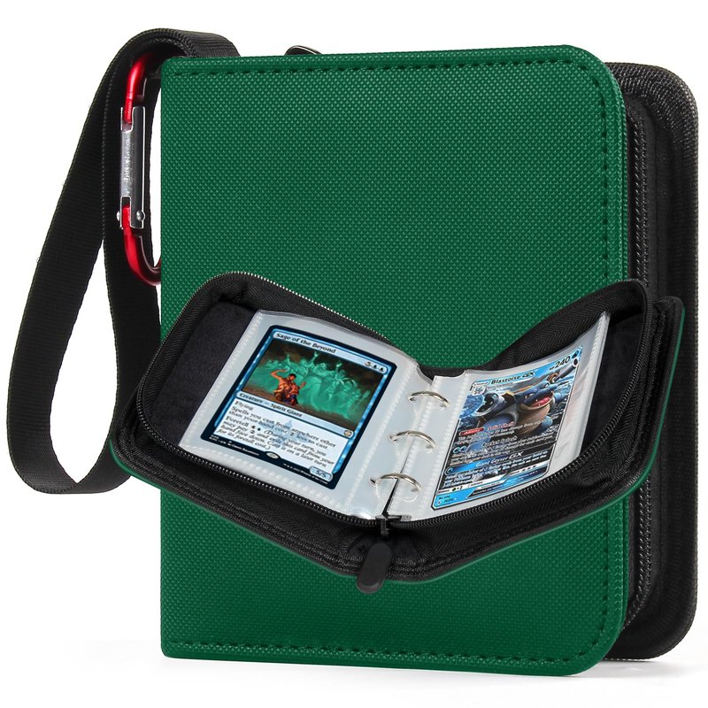 GEAoffice Mini Size Card Binder 1 Pocket, 80 Pockets Small Trading Card Album Book with 40 Removable Sleeves, 80 Top Loading Pockets Binder for TCG, MTG, Sports&Game Cards, Green