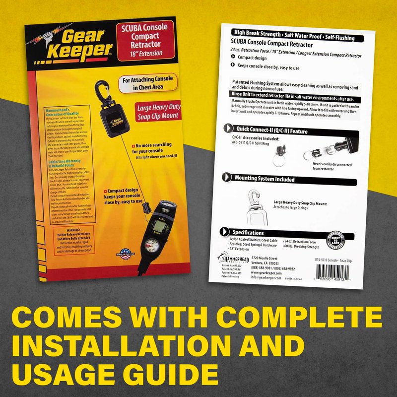 Gear Keeper Hammerhead Industries RT4-5913 Compact Console Retractor | 1 Pack | Fishing Boat Diving Gear | Scuba Diving Accessories | Secure Chest Area Console | Snap Clip Mount | Made in USA