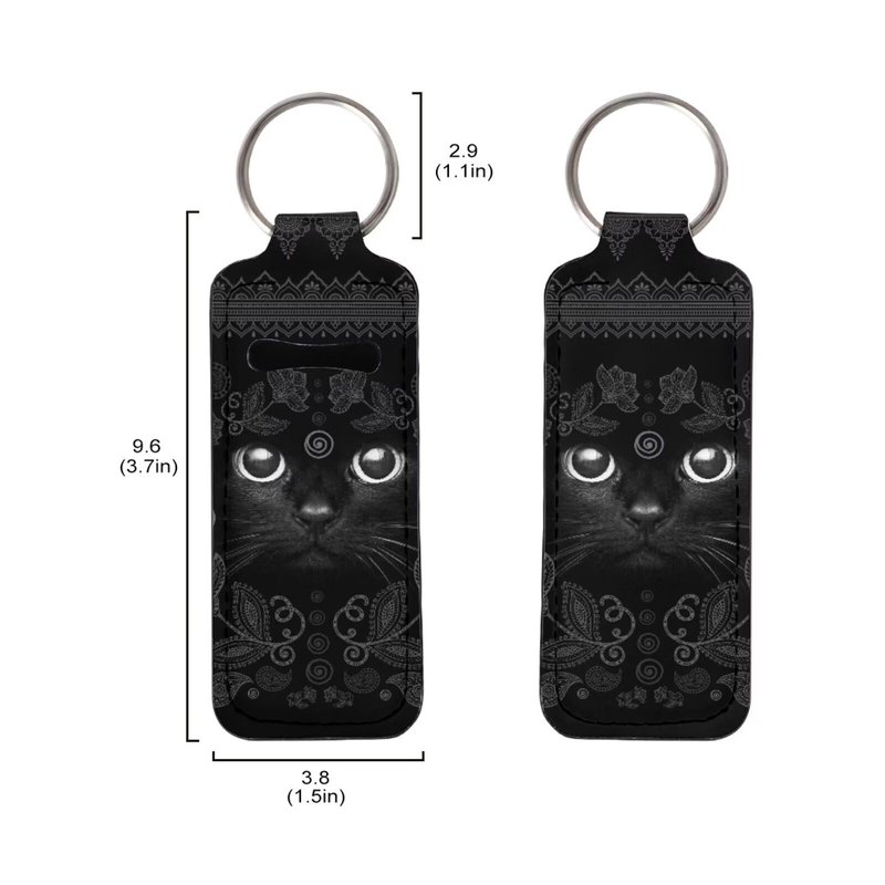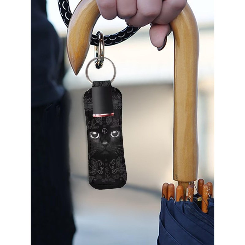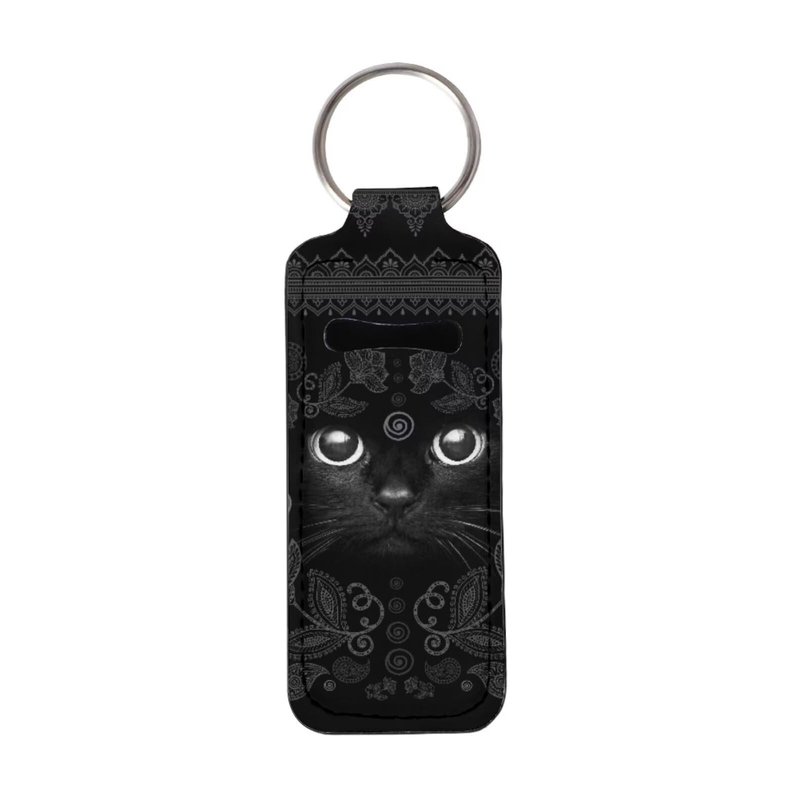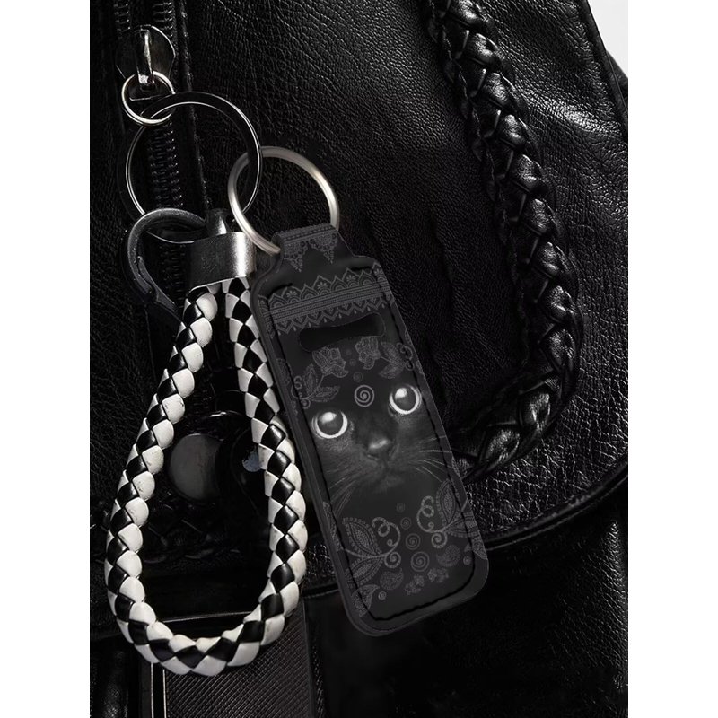 Gearider Boho FLoral Cat Face Lipstick Holder Keychain, Compact Lip Gloss Tube Holder