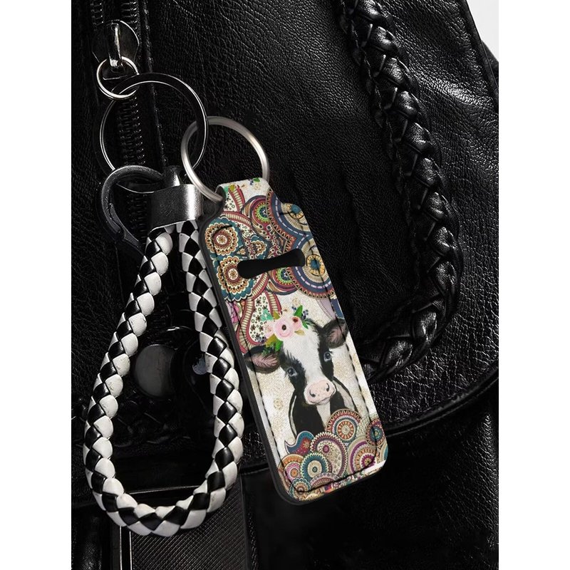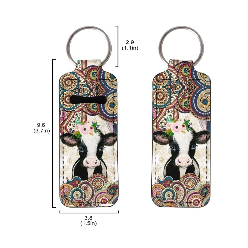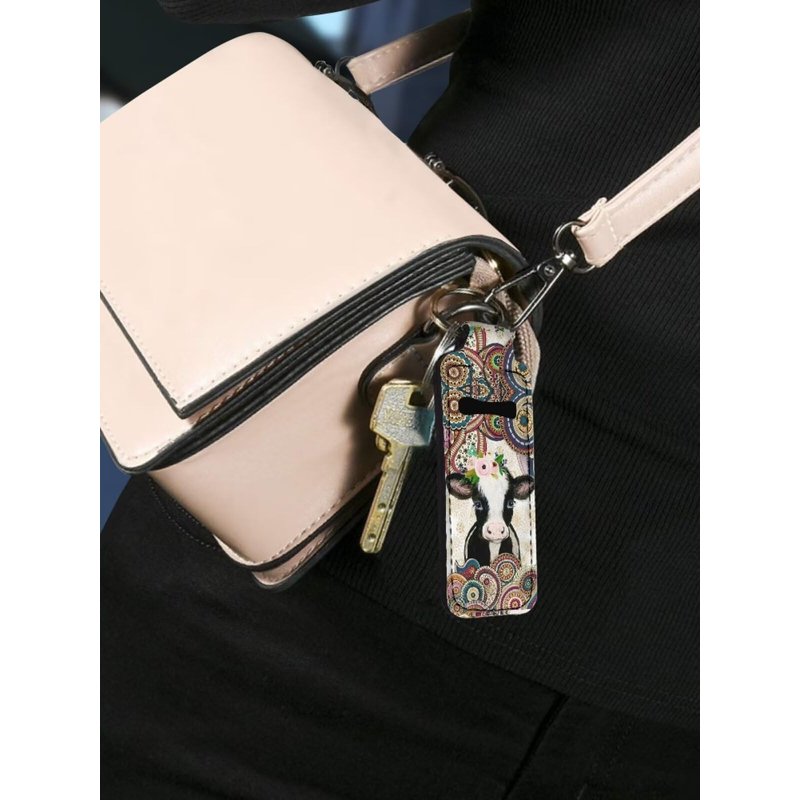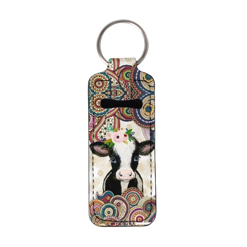 Gearider Mandala Cow Print Stylish Chapstick Holder Keychain, Lip Balm Protective Case