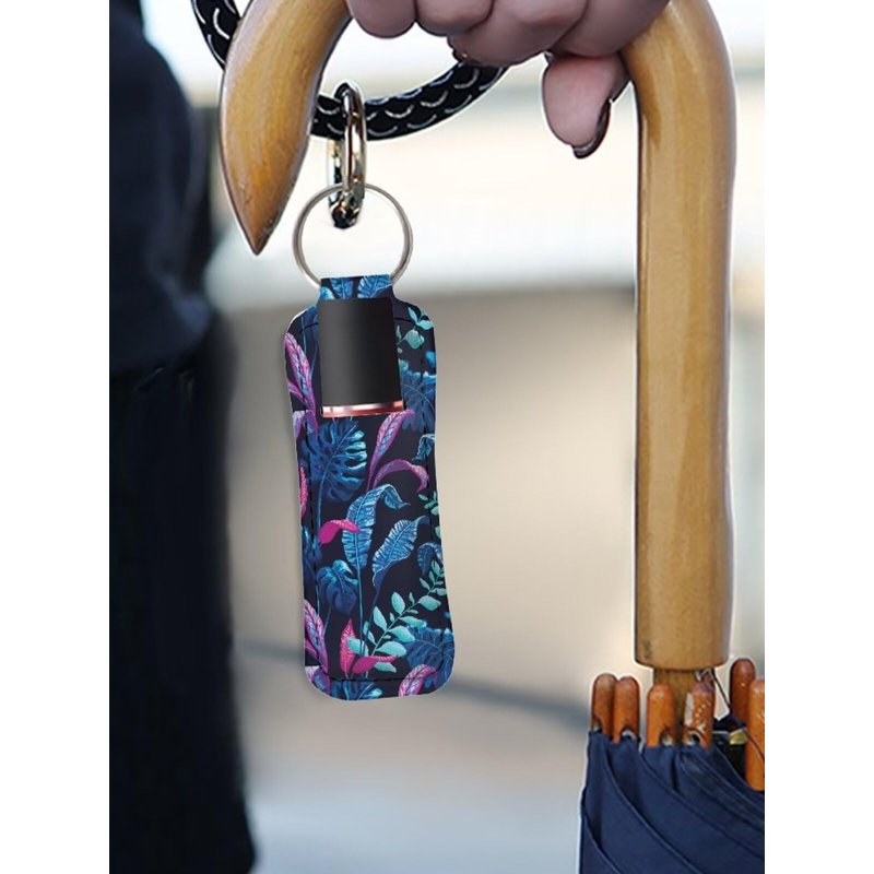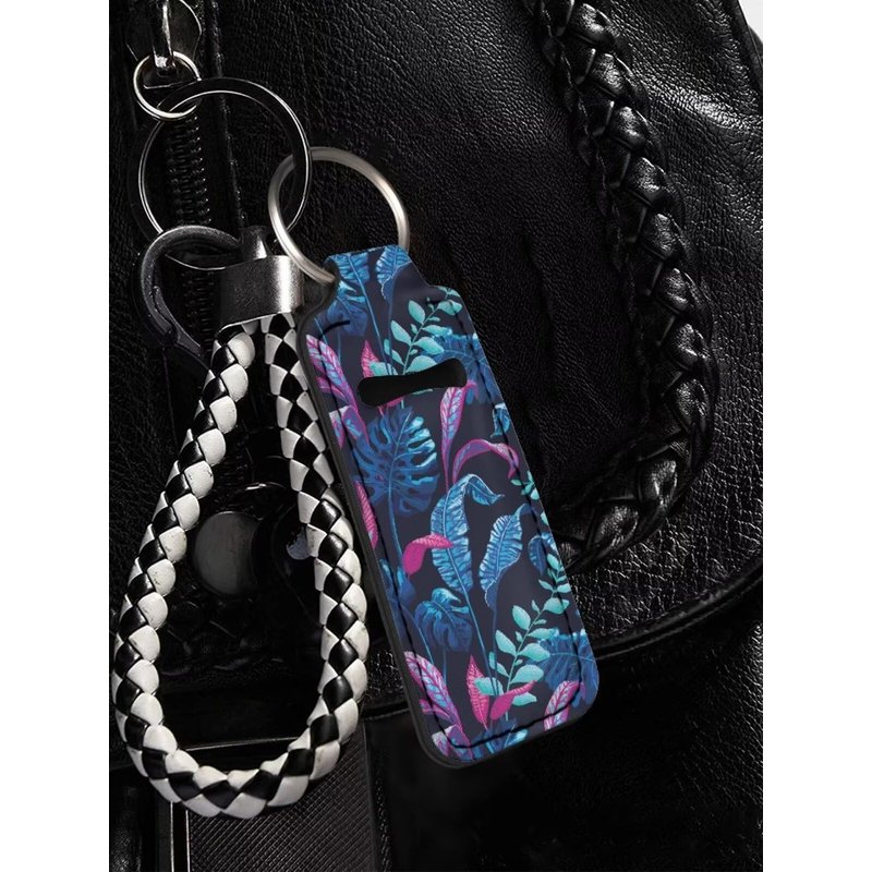 gearider Tropical Palm Leaves Design Portable Lip Gloss Tube Holder Keychain, Chapstick Sleeve