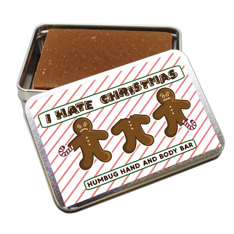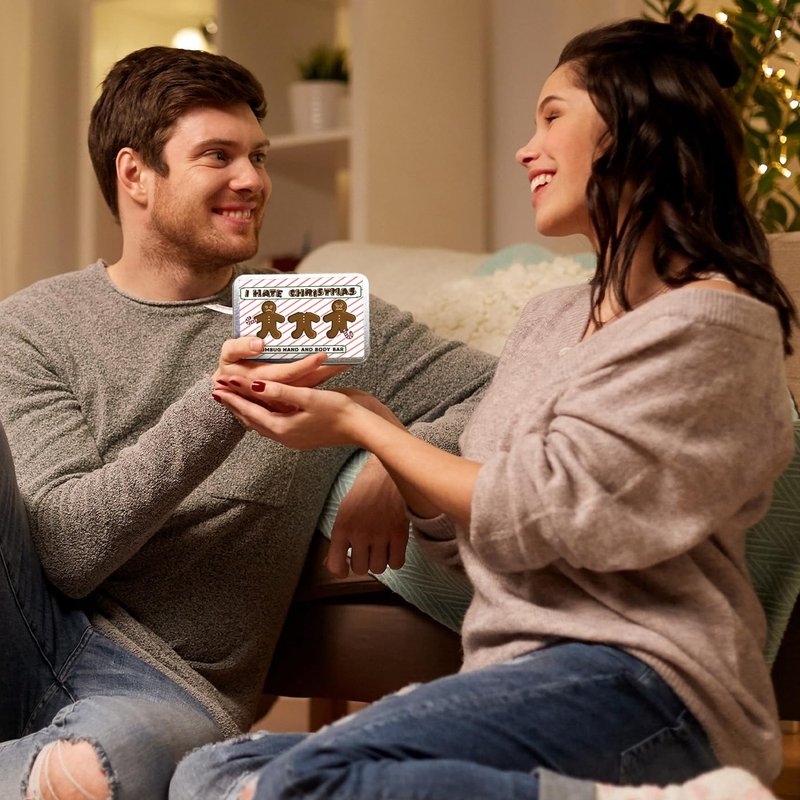 - Premium Quality with a Laugh: This holiday bath gift for men and women features a hand-poured, coffee-infused bar soap inside a tin decorated with bitten gingerbread cookies and a cheeky "I Hate Christmas" message.