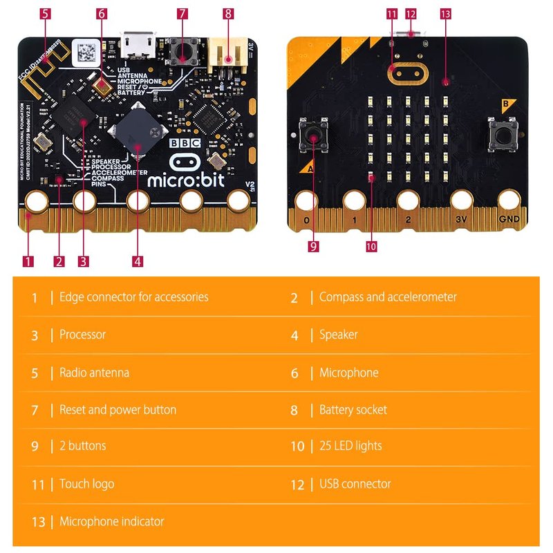- Package includes: 1x micro:bit v2.2, 1x USB cable, 1x battery holder(Not Include Batteries)