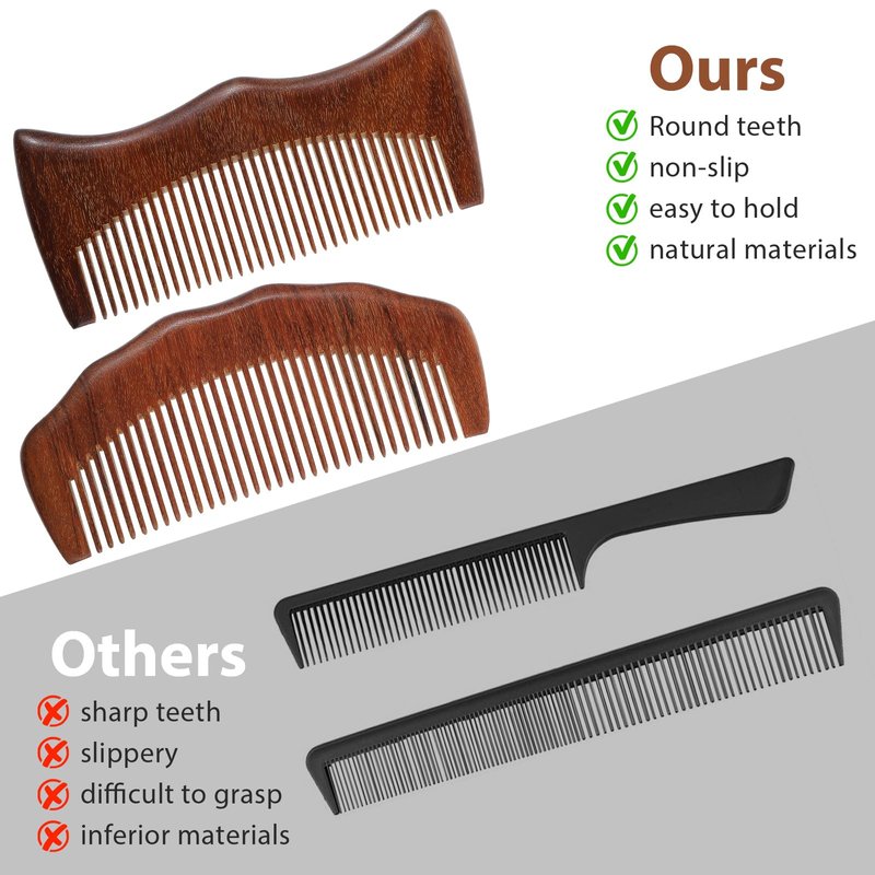 - 【High-quality Material】2PCS sandalwood delivery comb is made of high-quality natural sandalwood, the wood is delicate and smooth and is safe and reliable. Each one has a different natural wood color and wood texture, showing a unique aesthetic value.