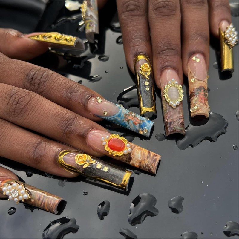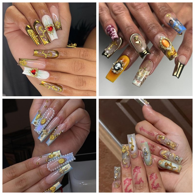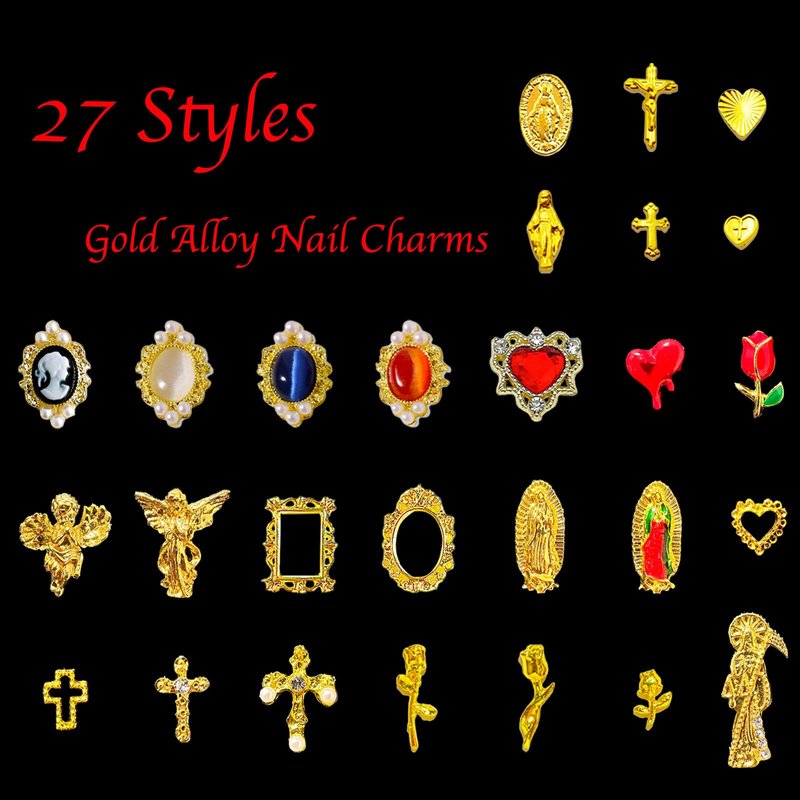 - 🌟Luxurious Nail Charms: 96pcs 3D gold alloy nail charms and two nail stickers.Alloy nail charms Include gem,heart,cross,rose,frame Gothic,angel,grim Reaper,MINI Virgin Mary nail accessories.These nail charms come in a variety of styles to suit your many manicure needs.