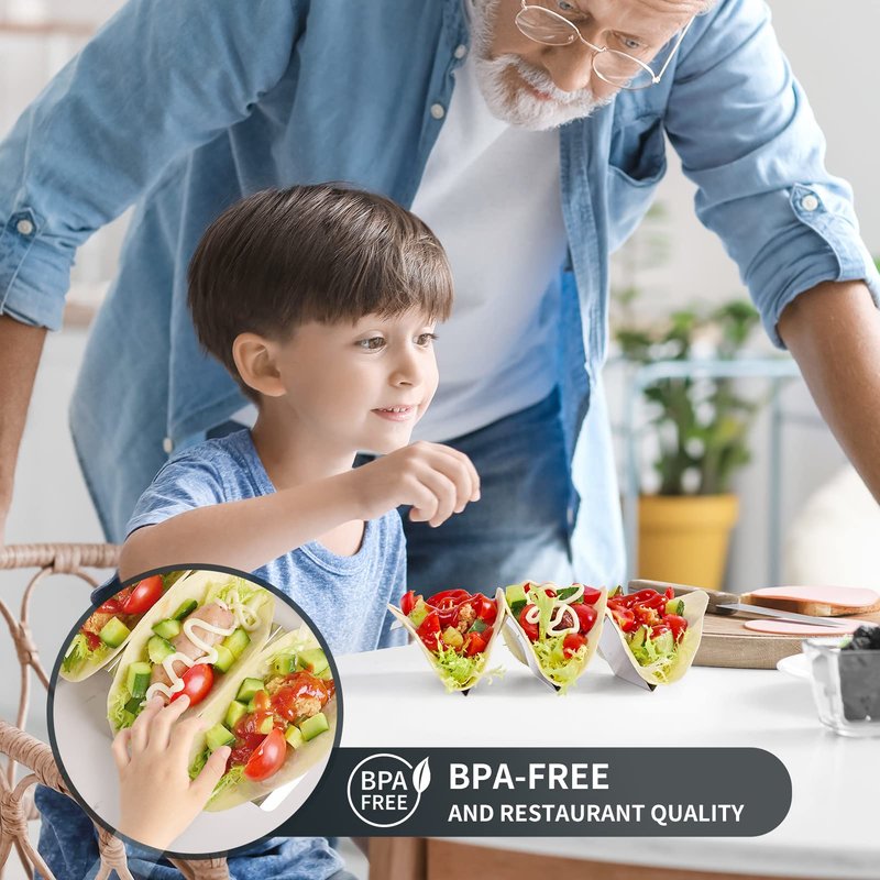 - 🌮[TACO HOLDER] Easy to fill, serve and eat warm soft or hard shell tacos. Perfect for taco night!