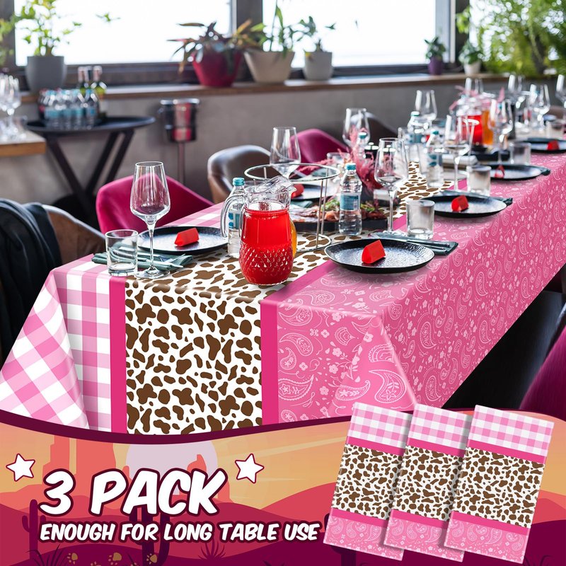 - Western Cowgirl Party Supplies: the package contains a total of 3 pieces of cowgirl table cloths, each is mainly designed in 3 parts: pink plaid, pink paisley bandana and brown cow designed pattern, which is vibrant and eye catching; The ample quantity and delicate design make them ideal supplies for your party events