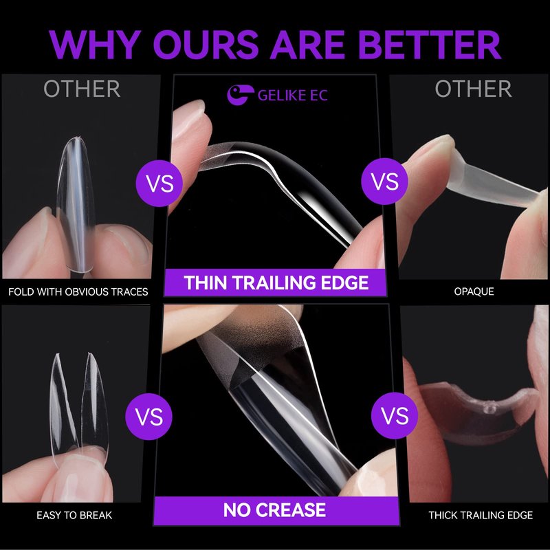 - [OUTSTANDING SHORT NAILS] Gelike EC brings you a soft gel nail tips kit which gives a full cover protect to your nails with our soft gelly tips. Short almond gel nail tips, soooo perfect for people who loves nail art but do not wanna harm the natural nails. They are just as convenient as your natural nails.